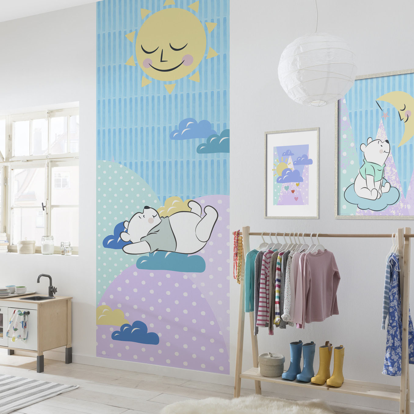 Mittelgroße "Winnie Pooh" Vlies Fototapete mit einem traumhaften Motiv aus dem erfolgreichen Disney Klassiker "Die vielen Abenteuer von Winnie Puuh".