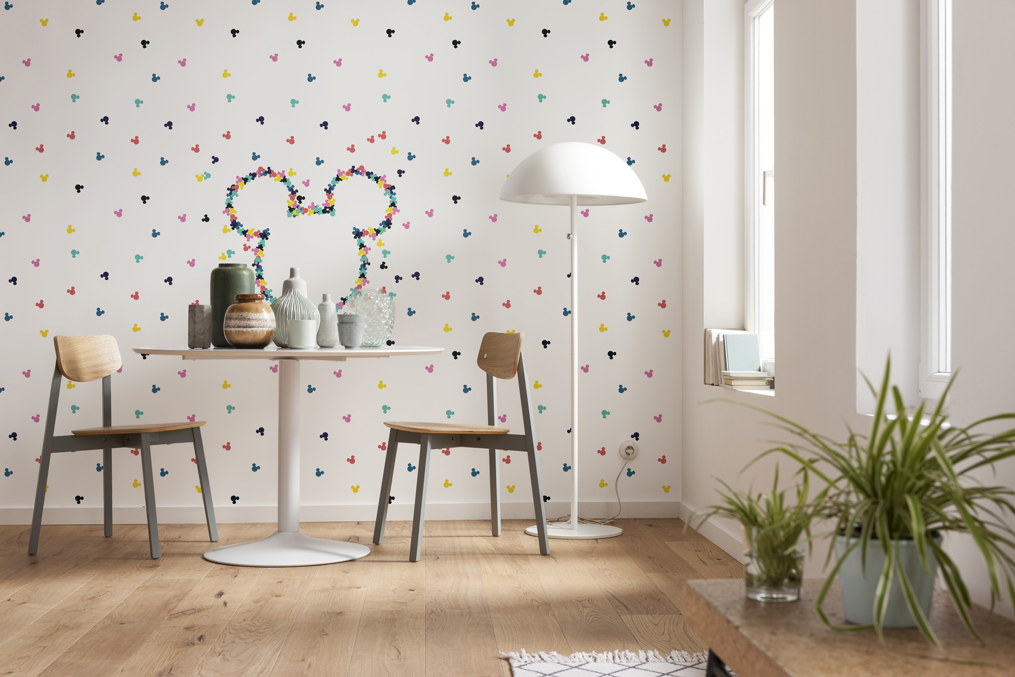 Wie ein bunter Konfetti-Regen für die Wand wirkt die farbenfrohe Collage von Mickey Maus. Die Mickey-Silhouette als lustiges Statement für die Wand. Zeit um Farbe zu bekennen!
