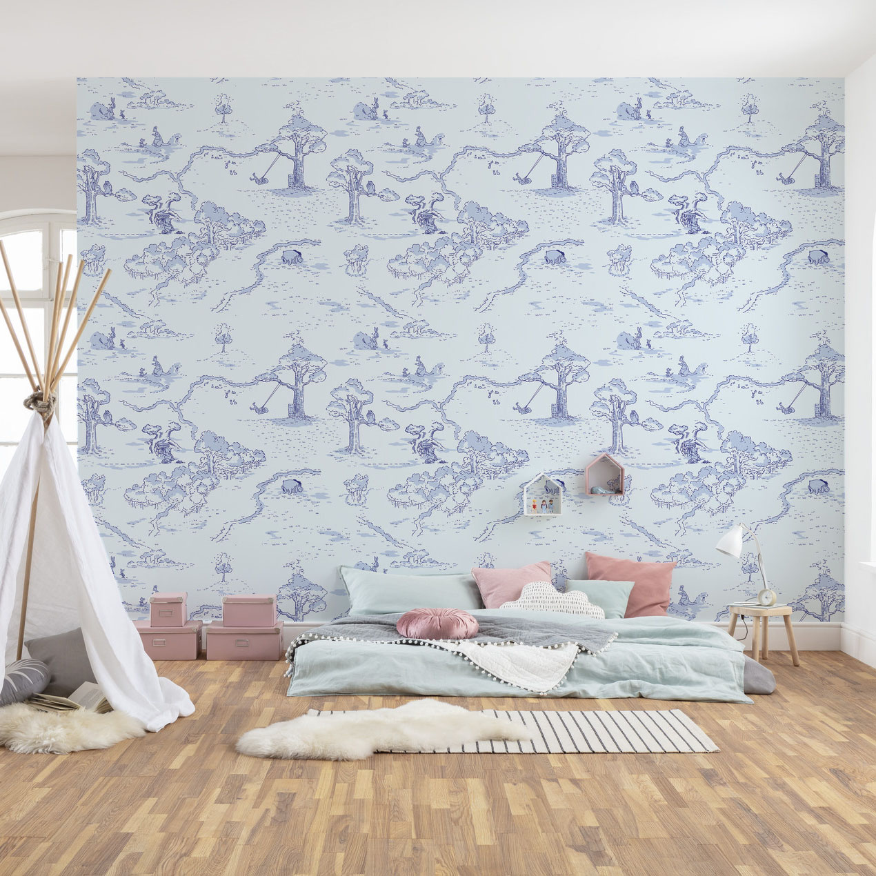 Große "Winnie Puuh" Vlies Fototapete mit dem liebenswerten Bären und seinen Freunden, ideal für jede Kinderzimmerwand.