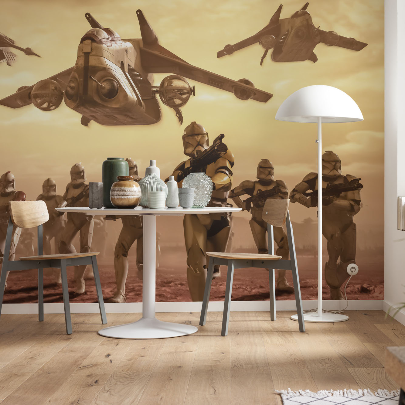 Große "Star Wars" Vlies Fototapete mit einem fantastischen Motiv aus der erfolgreichen Science Fiction Saga, ein Muss für alle kleinen und großen Jedis.