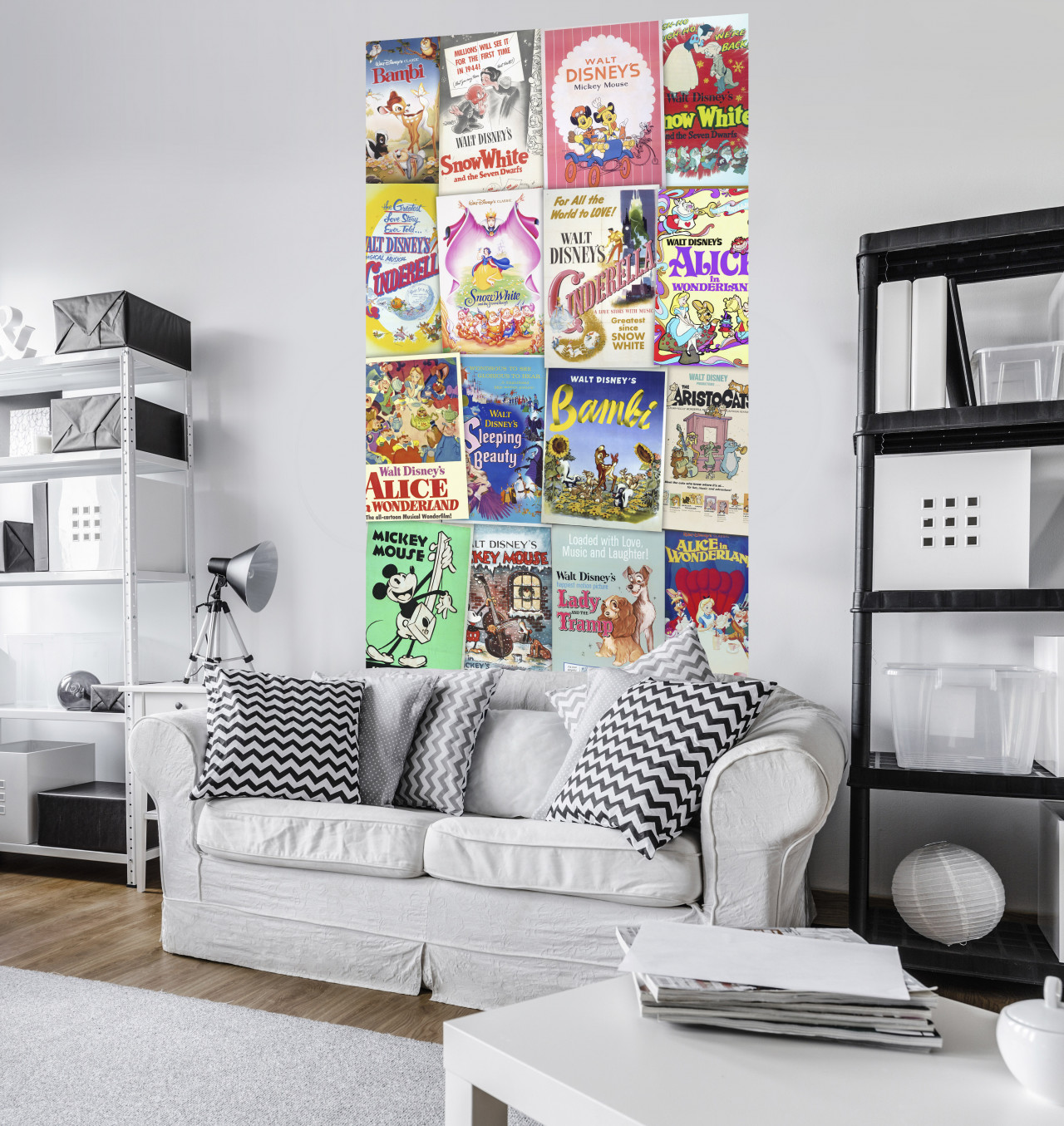 Mittelgroße "Disney" Fototapete, bestehend aus vielen alten Postern bliebter Disney Klassiker.