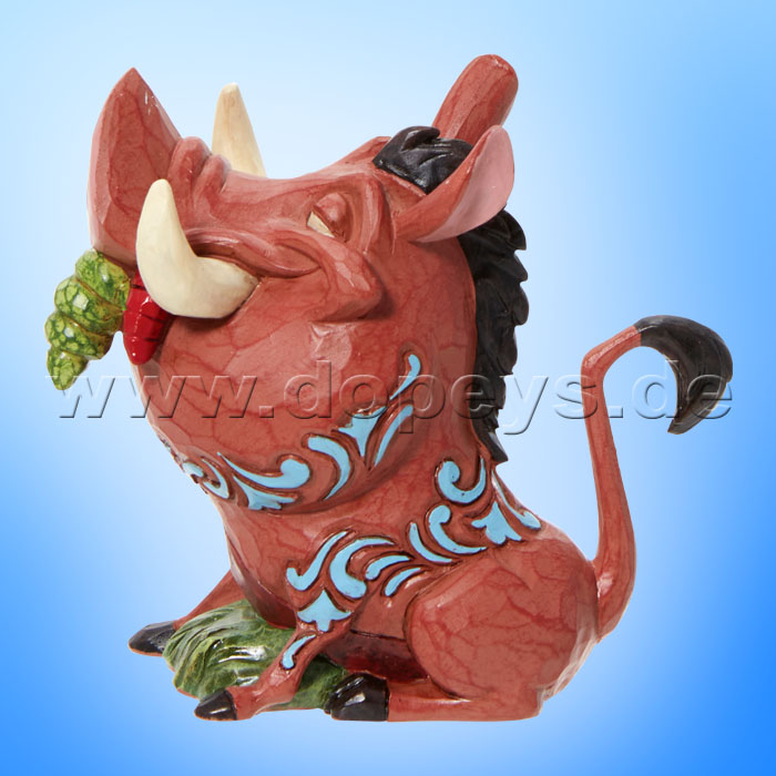 Das ganze Maul voller Käfer - Pumbaa verschlingt gerade freudig jede Menge Leckereien. Diese forsche Disney Mini-Figur von Jim Shore ist mit seinen blumigen Verzierungen ein Vorgeschmack auf das 30-jährige Jubiläum des Disney Klassikers "Der König der Löwen" in 2024.