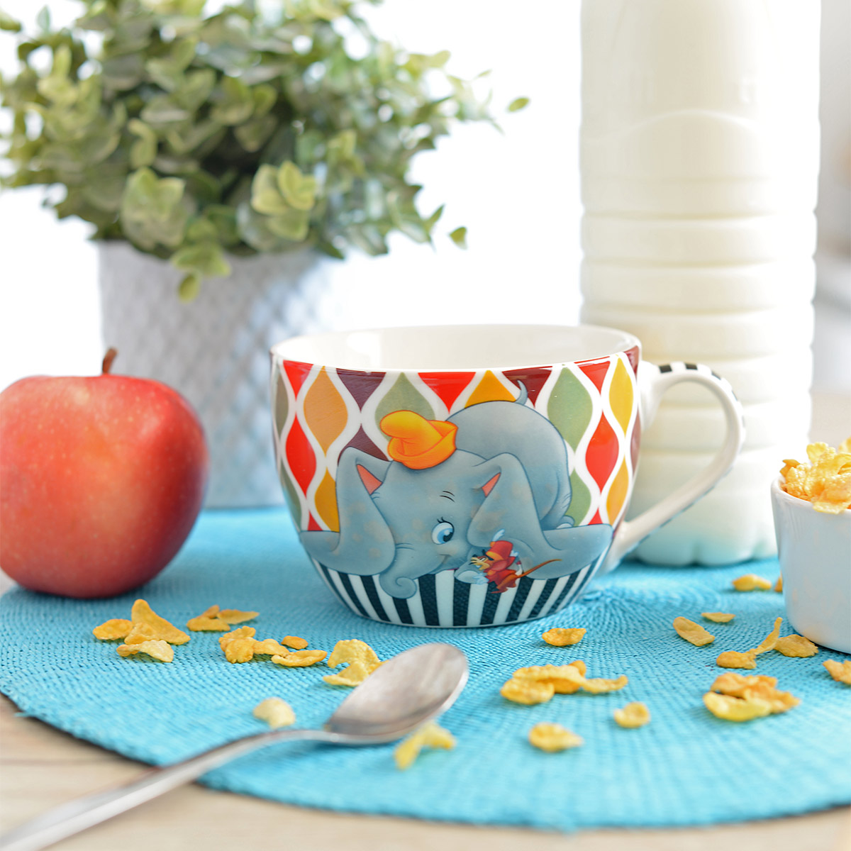 Diese hübsche große Cappuccino Tasse aus Porzellan zeigt den süßen Disney Elefanten Dumbo mit seinen riesigen Ohren.