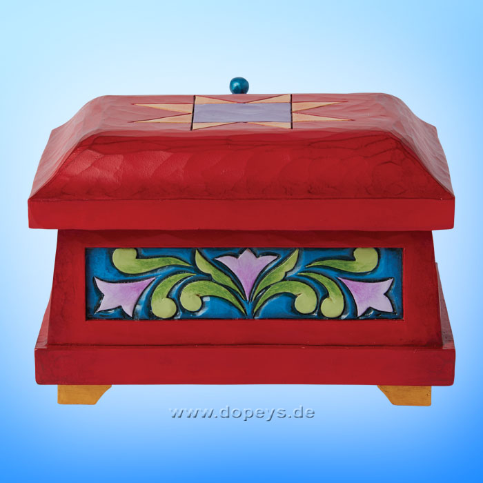 Diese ikonische Schmuckschatulle kommt dierekt aus einem Märchen. Die böse Königin benutzte eben so ein Kästchen im Disney Film "Schneewittchen und die sieben Zwerge". Nutze diese Jim Shore Figur, um deine eigenen Schätze zu sammeln und beanspruche den Titel "Die Schönste auf dieser Welt" für dich.