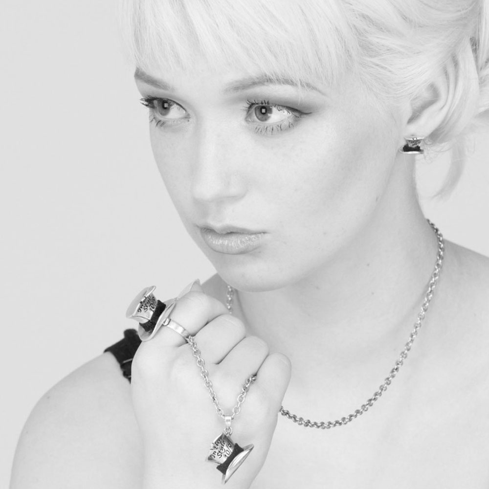 Where can you find gold in Wonderland, maybe in the treasure chamber of the queen of hearts? Celebrating the delight of the Hatter are these stud earrings. Despite their size they boast such detail in their dazzling resemblance to the top hat of the wonderfully quirky 'Mad Hatter'. Script engraving and leather trim make for the ultimate presentation.