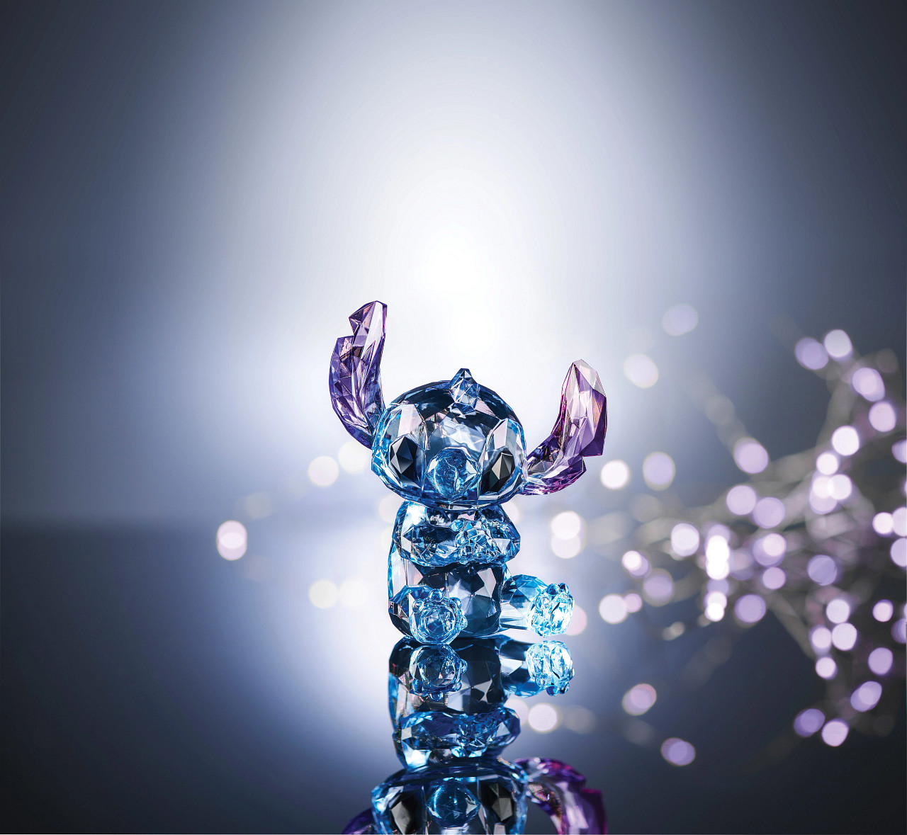 The Disney Facets collection fashions the studio’s most beloved characters into stylized acrylic sculptures. These graceful copies sparkle with show stopping detail and appeal. Stich the alien sits with a sweet smile and glamourous glow.