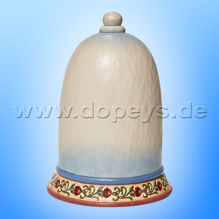 This Jim Shore hand-painted diorama figurine helps celebrate the 30th anniversary of the legendary romance of Belle and the Beast. Very enthusiastic Lumiere, Cogsworth and Mrs. Potts watch as Belle and the Beast share a moonlight waltz and loving gaze.