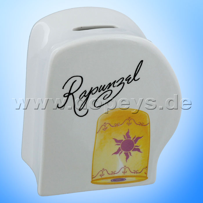 This Rapunzel money bank includes the Princess's iconic floating lantern which features the emblem of the sun. Only available from the Enchanting Disney Collection and is a perfect gift for any occasion or as a treat for yourself. Featured here, is a beautiful ceramic money bank.