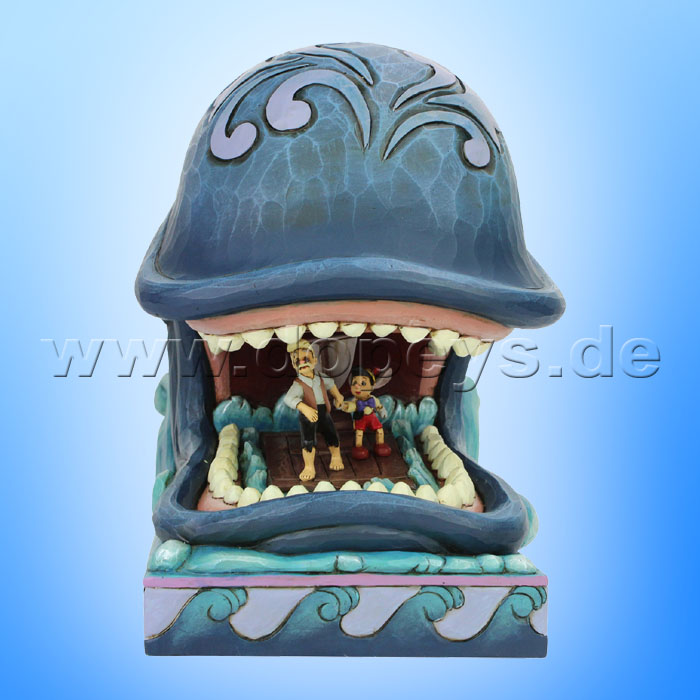 Holding his sons hand, Geppetto calms Pinocchio's fears even in the mouth of a beast. Monstro the giant whale looks absolutely terrifying in this Jim Shore figurine, even when covered in ravishing rosemaling.