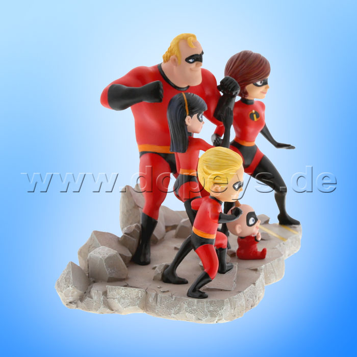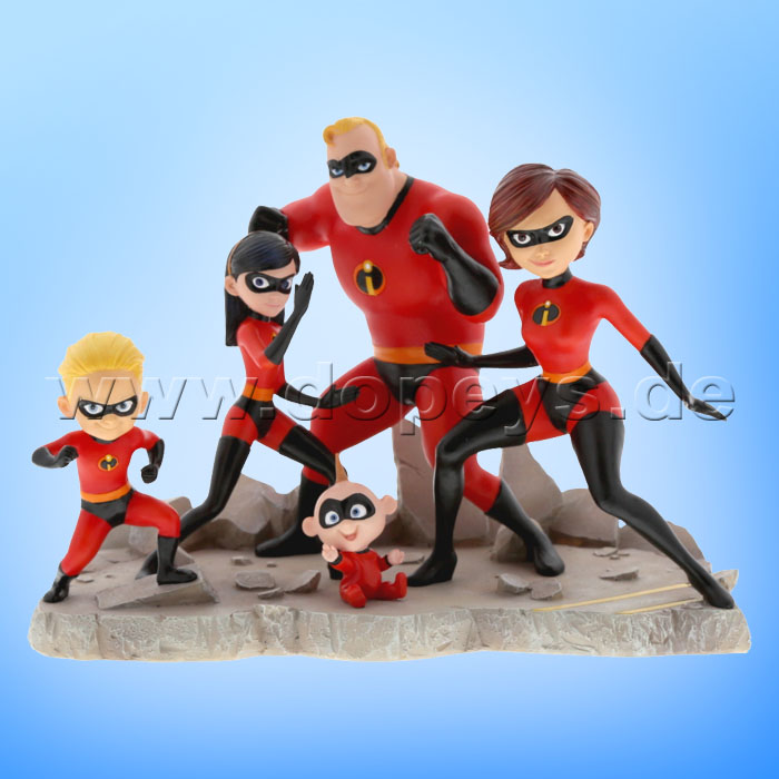 The Parr family are shown here united and ready to fight as one superhero family including baby Jack-Jack. This Incredibles figurine has been designed especially for us by the artists at Disney/Pixar. The figurine is made from resin.